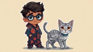 ロゼット模様が綺麗な可愛い男の子とシルバーの猫が生成されました![]()