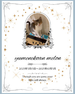 メロンちゃんのお迎えをご検討くださっている方がいらっしゃるかもと思い、取り急ぎご報告いたします。