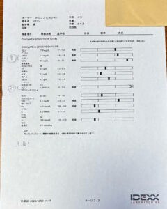 エコーとレントゲンには異常は見られませんでしたが、血液検査の結果、肝臓機能障害を示す数値が高値で、急性肝機能障害とのこと。