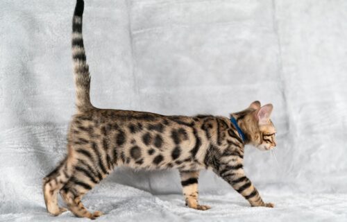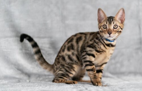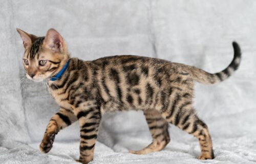 小さめのスポット模様が美しく、野性味のある印象を持つベンガルの男の子です。