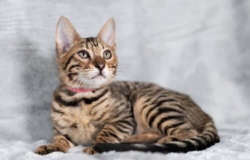 小さめのスポット模様が全身に入った、野性味のあるベンガルの女の子です。